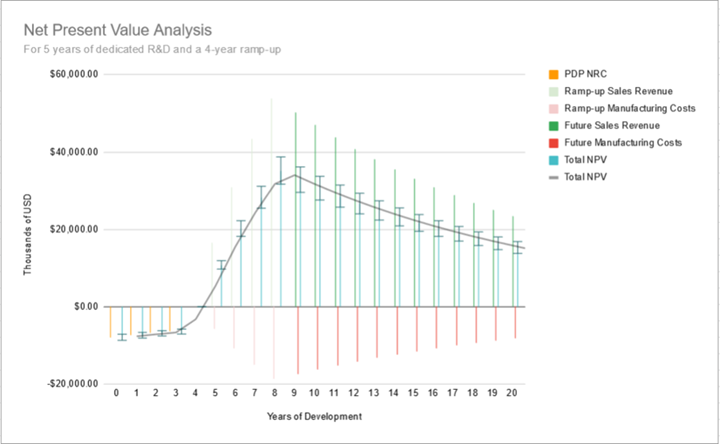 All future cash flows were plotted on a bar chart with a trendline showing the total NPV value.