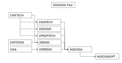 The tree highlights the key relationships in the DSM from which the 3GEOSSA technology can be derived as well as the objects which derive from our technology.