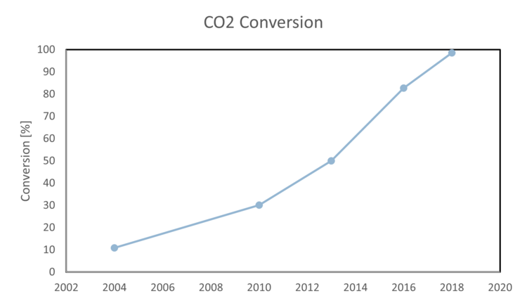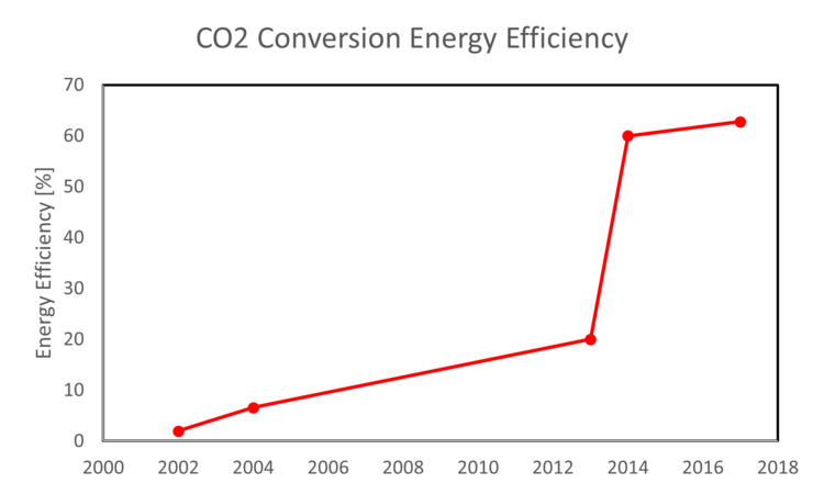 | Conversion Efficiency | % | ratio of theoretical energy required for targeted chemical conversion to the total energy consumed by the process |