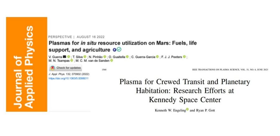 Citation 1: K. W. Engeling and R. P. Gott, "Plasma for Crewed Transit and Planetary Habitation: Research Efforts at Kennedy Space Center," in IEEE Transactions on Plasma Science, vol. 51, no. 6, pp. 1568-1579, June 2023, https://doi.org/10.1109/TPS.2023.3277216