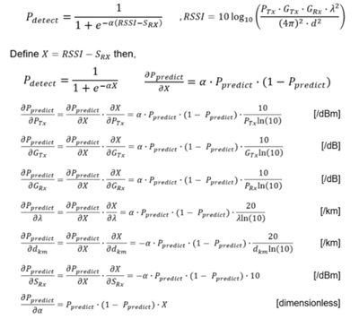 Here, since the detection probability follows a logistics function, the result of the partial differentiation of each variable shows a sigmoidal slope. Thus, a positively large value of the partial derivative implies a higher probability of detection.Next, we evaluate the sensitivity of the probability of detection to each variable. Here, the rate of change in the detection distance is shown for a 1% increase in each variable from the reference value.