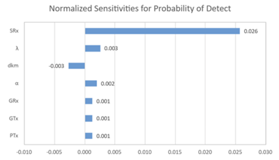 The results show that improving the receiver's receiver sensitivity is strongly influenced by improving the probability of detection. Despite the different indicators and different derivation assumptions in the equations, the most contributing variables are consistent with the results for detection distance, and the results for each are considered plausible.