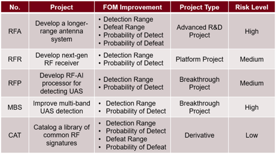 Based on the recent proliferation of UAS, there should be a need to address the case of UAS misuse. The company's strategic drivers and FOM targets based on this need are considered to be as follows.
