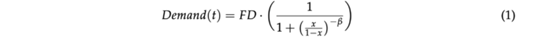 The data throughput demand per customer is assumed to be 10 Mbps. The customer growth is modeled as an S-curve (shown below) and using equation (1) starting from year 3, where the first 3 years are allocated for R&D development,