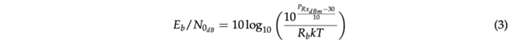 where d is distance to the satellite, f is the carrier frequency and c is the speed of light. All variables in (1) are in units of dB or dBm (highlighted in the subscripts). Once the received power is known, Eb/No can be computed as