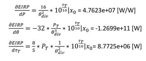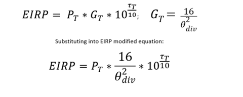 This sensitivity analysis will analyze the EIRP inputs to the downlink equation, while also folding in optical losses τ_T [db] and beam divergence angle Θ_div [rad], into the equation and create a modified EIRP equation: