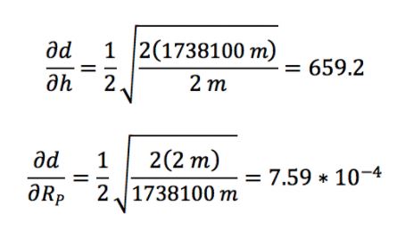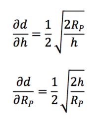 Calculating the partial derivatives of the range equation with respect to variables h and R_P: