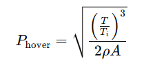is considered where T is thrust, Ti is a scaling factor depending on propulsor type, ρ is air density, and A is the disk actuator area. This power quantity can be combined with the energy needed for a fixed range by rearranging the Breguet Range Equation shown above, which gives